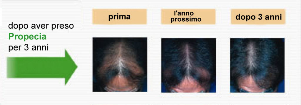 L’AGA (calvizie maschile) è progressiva e, se non trattata, il diradamento dei capelli progredirà. Propecia lo sopprime. Propecia sopprime la produzione di DHT, riduce la caduta dei capelli e rallenta la progressione dell’AGA.